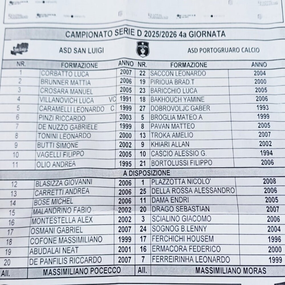 Vai alla galleriaNella galleria immagini in basso all'articolo sono riportate le formazioni.