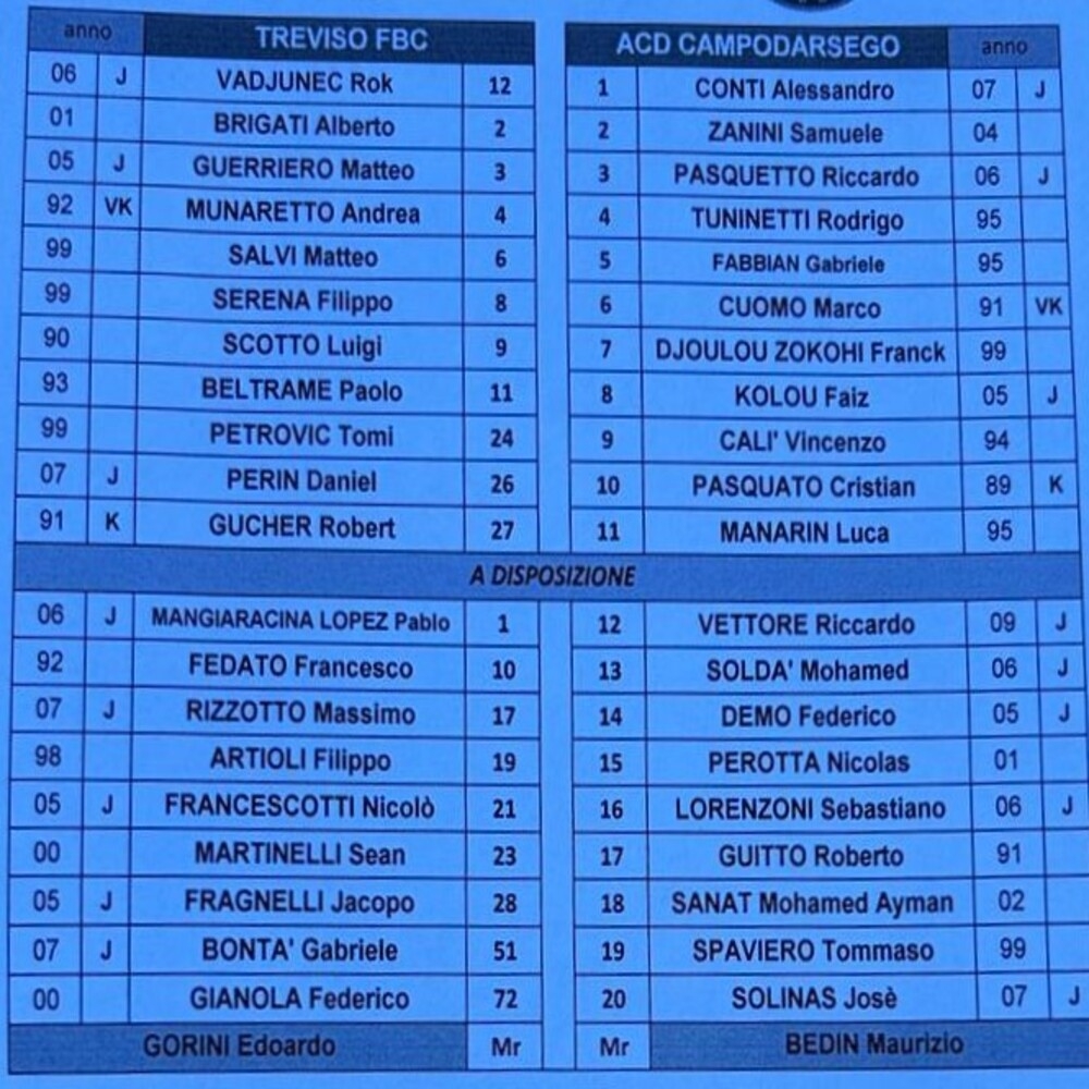 Treviso - Campodarsego 2-0 (finita)