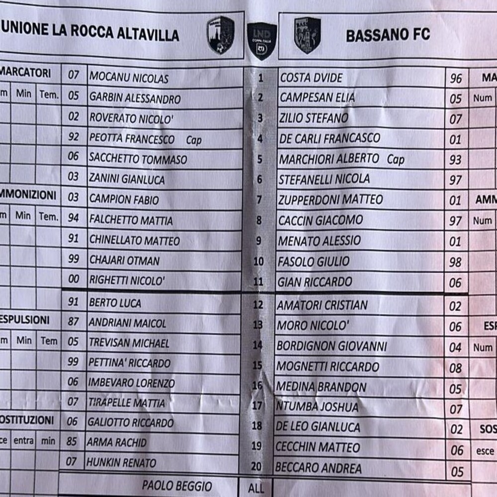 Unione La Rocca Altavilla - Bassano 2-0 (finita)