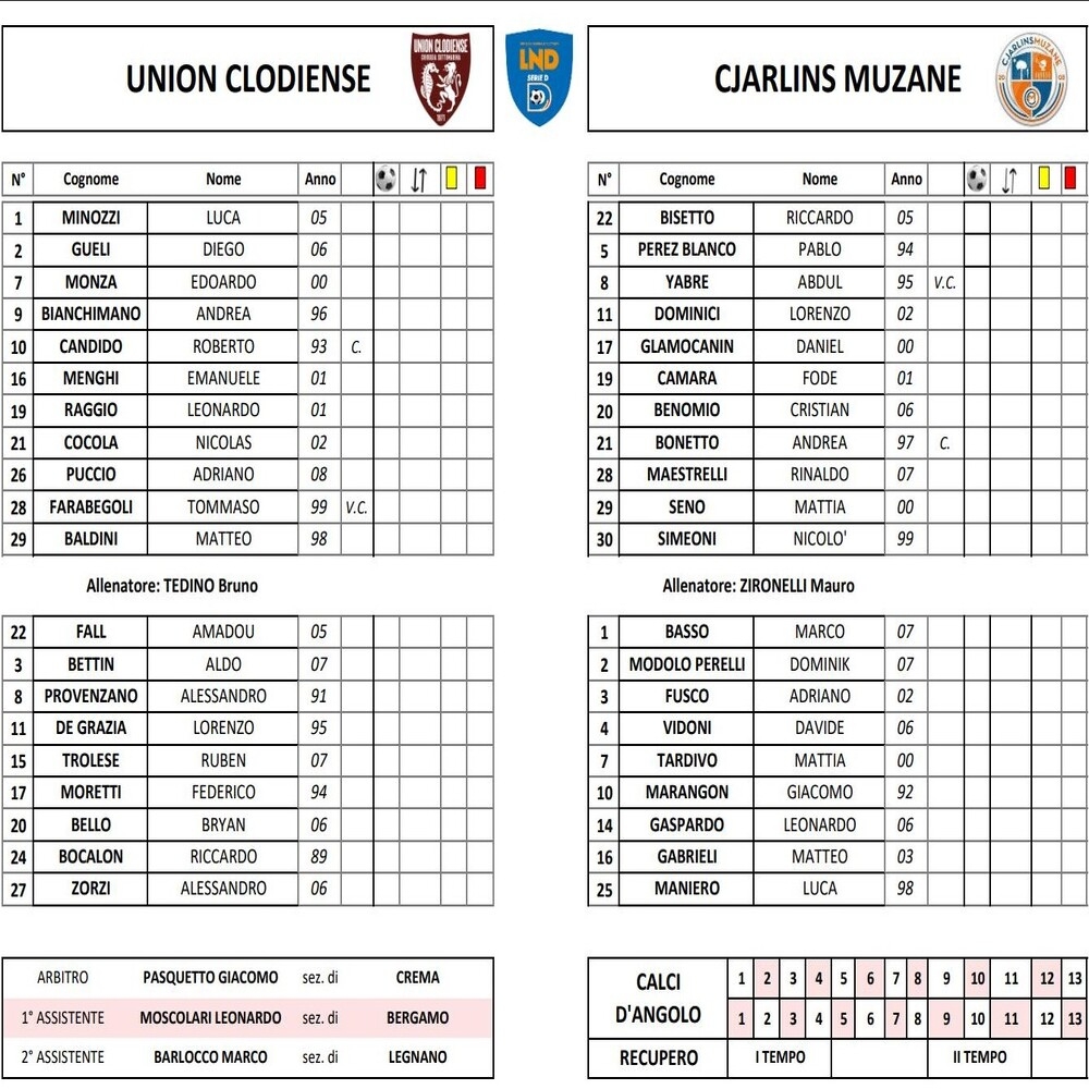 Union Clodiense - Cjarlins Muzane 1-3 (finita)