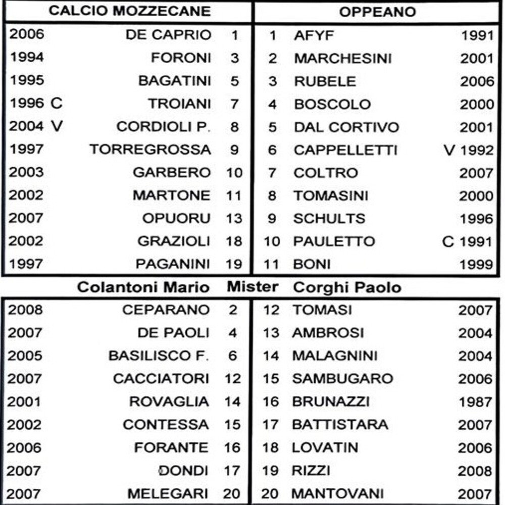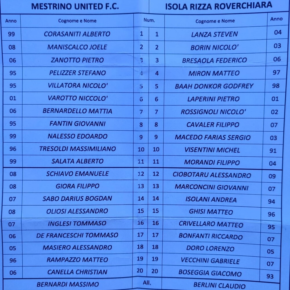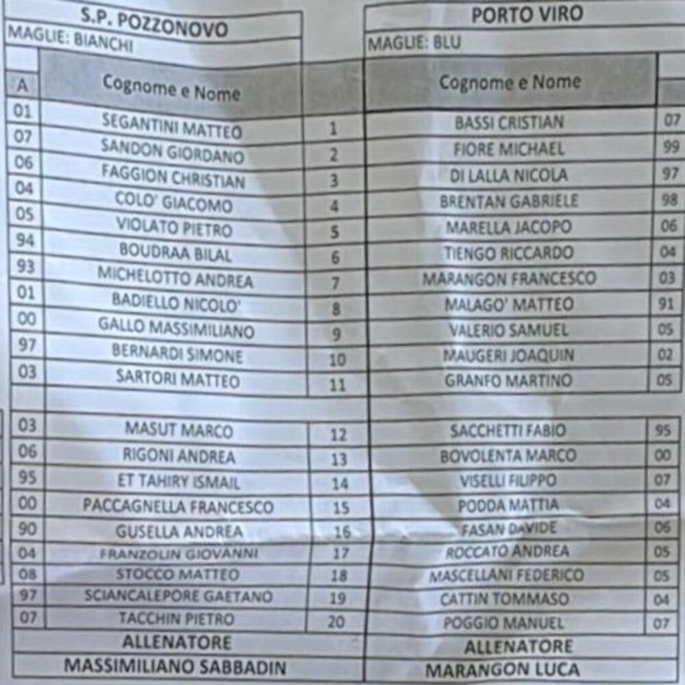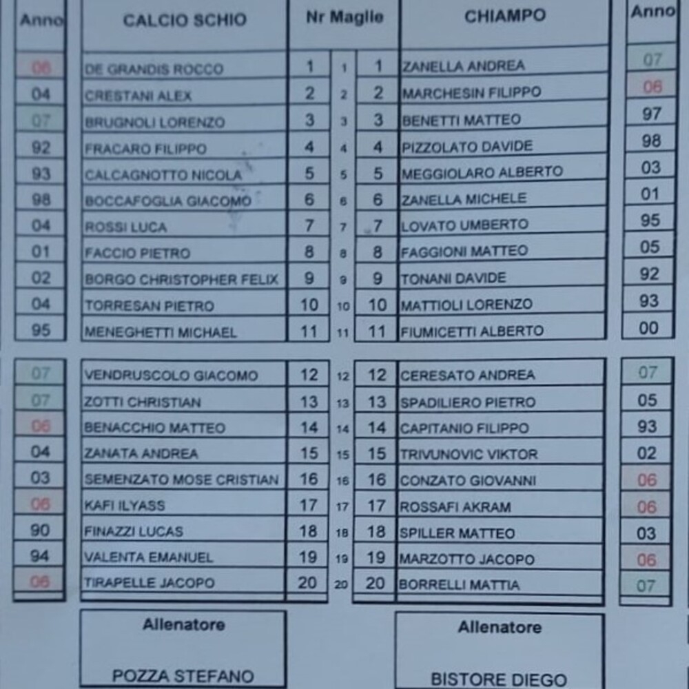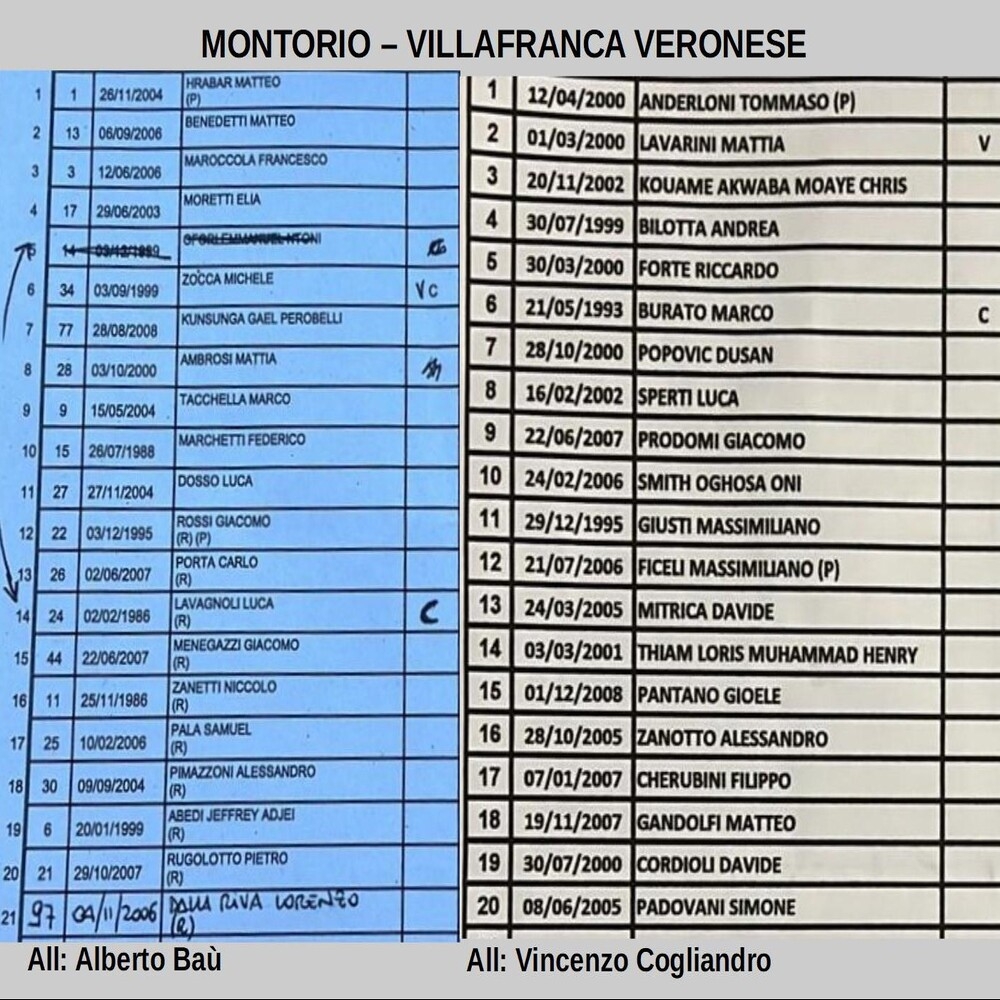 Non pervenute le distinte di Montecchio Maggiore-Ambrosiana.