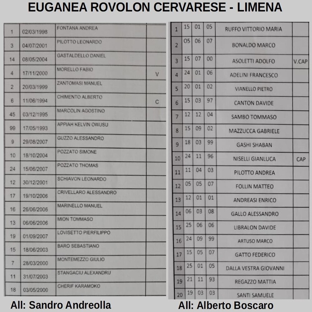 L'unico pareggio è maturato tra Euganea Rovolon Cervarese e Limena.