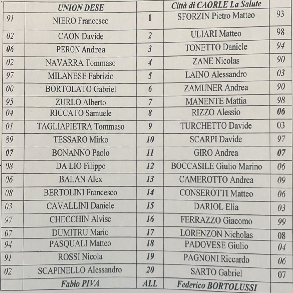 Note: al 25' pt Figallo (C) fallisce un rigore