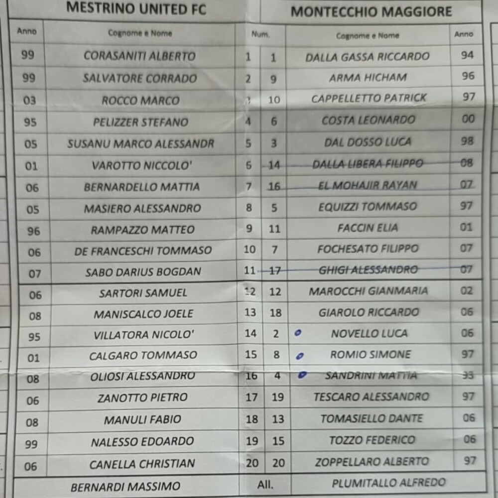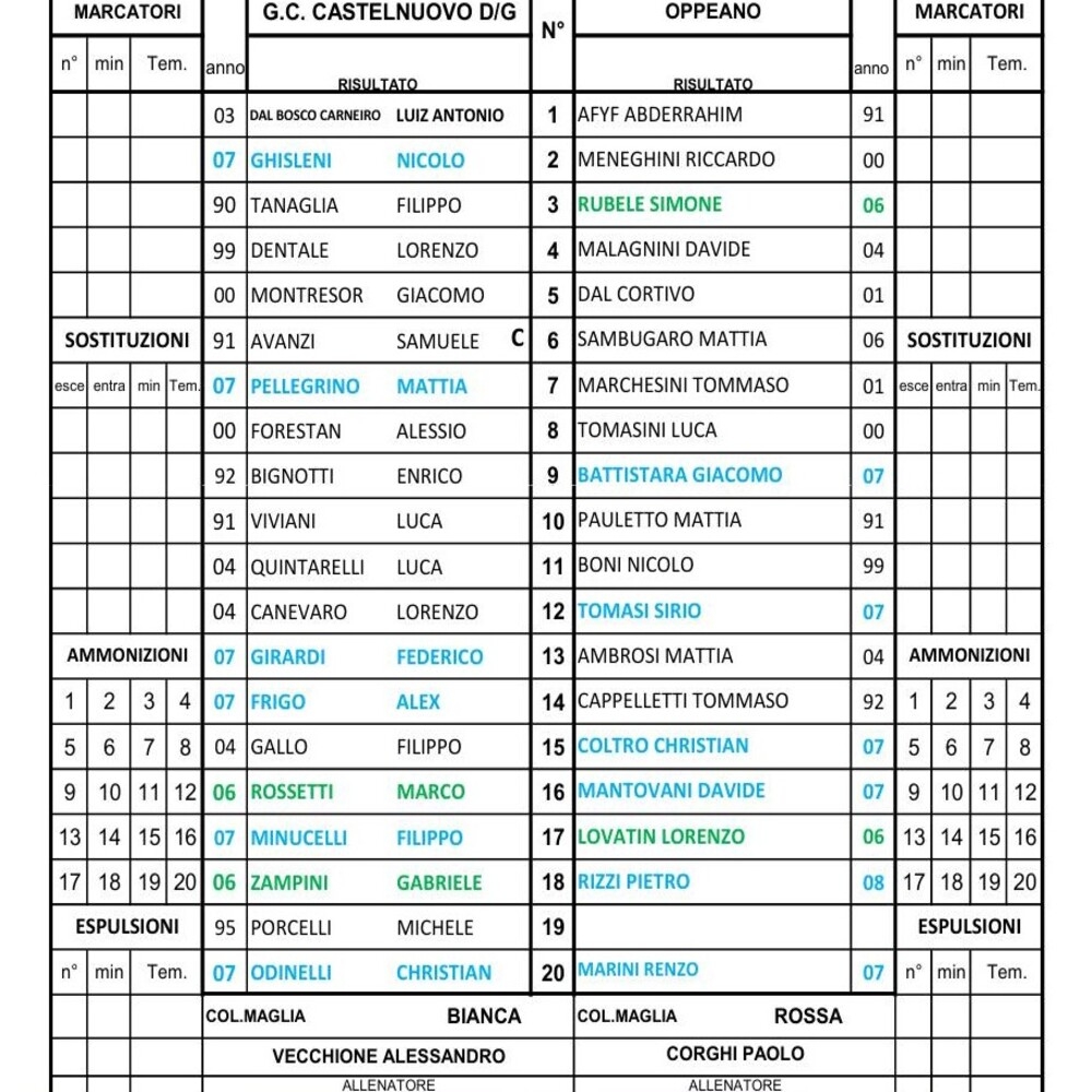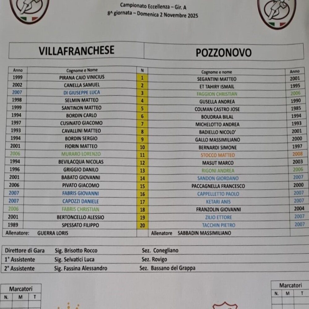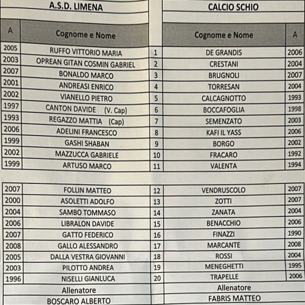 Non pervenute le formazioni di Isola Rizza Roverchiara-Chiampo.