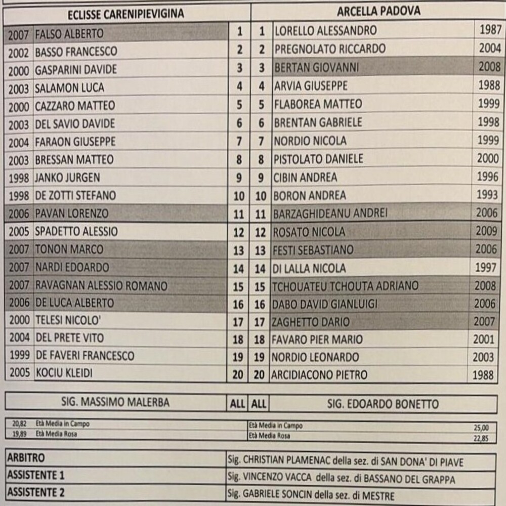Eclisse Careni Pievigina - Arcella Padova 0-2 (finita)