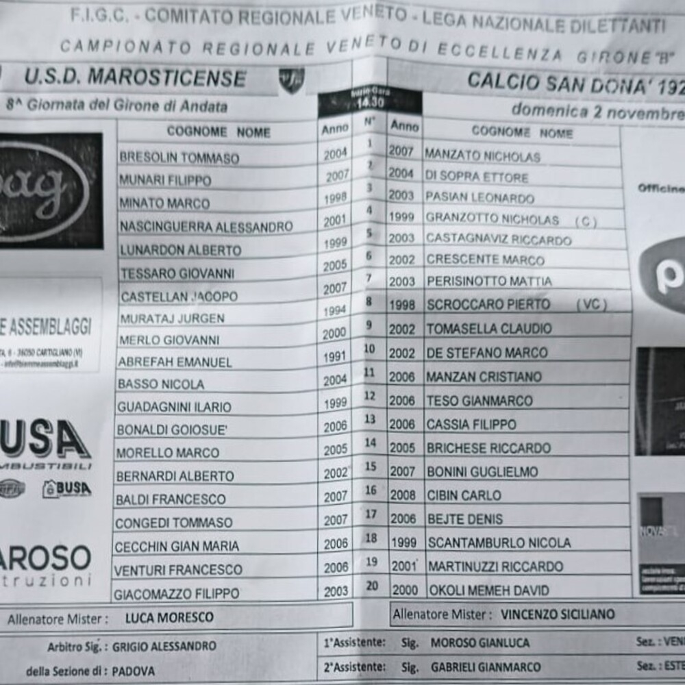 Marosticense - Sandonà 0-2 (finita)