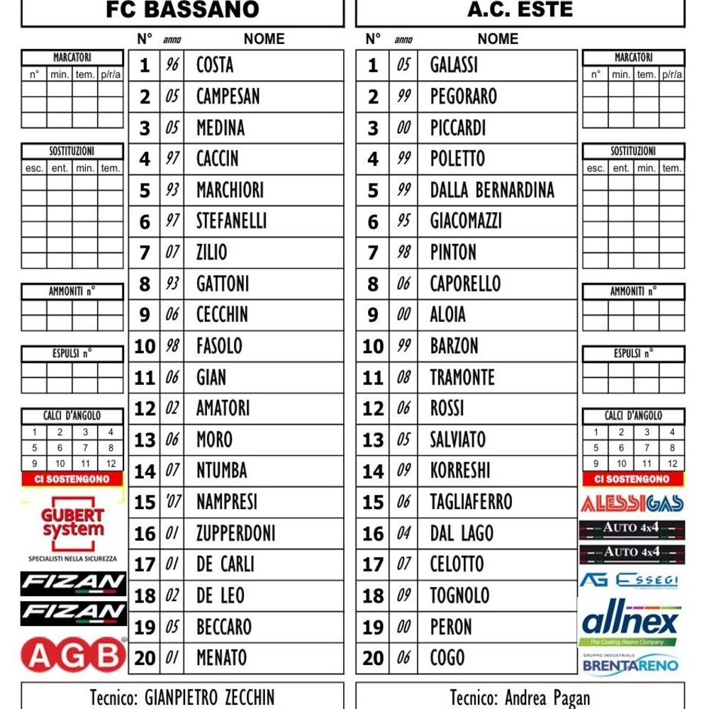 Nella galleria immagini in basso all'articolo sono riportate le formazioni di oggi al "Mercante".