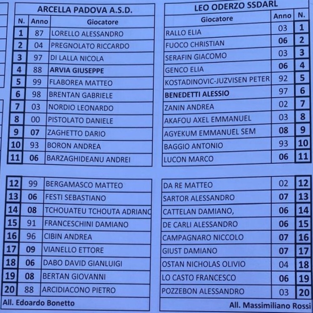Arcella Padova - LeO Oderzo 0-2 (finita)