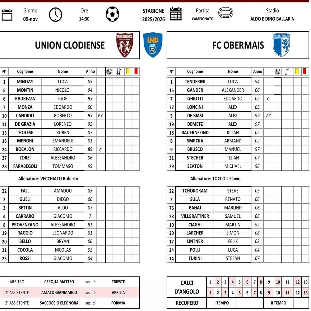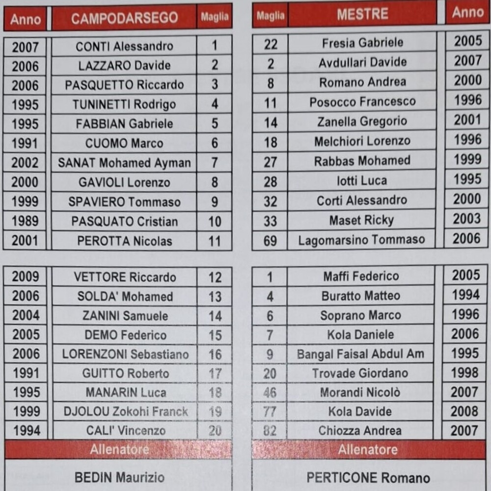 Mestre - Union Clodiense (dovrebbe essere posticipata a mercoledì 26 novembre per la convocazione di due giocatori del Mestre nelle rispettive nazionali)