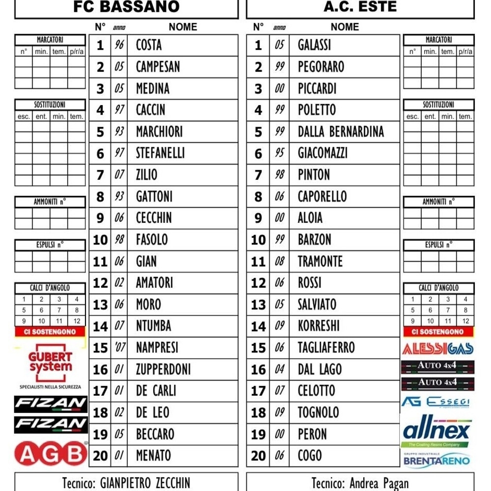 Reti: 39' pt Dalla Bernardina (E), 4' st Cecchin (B)