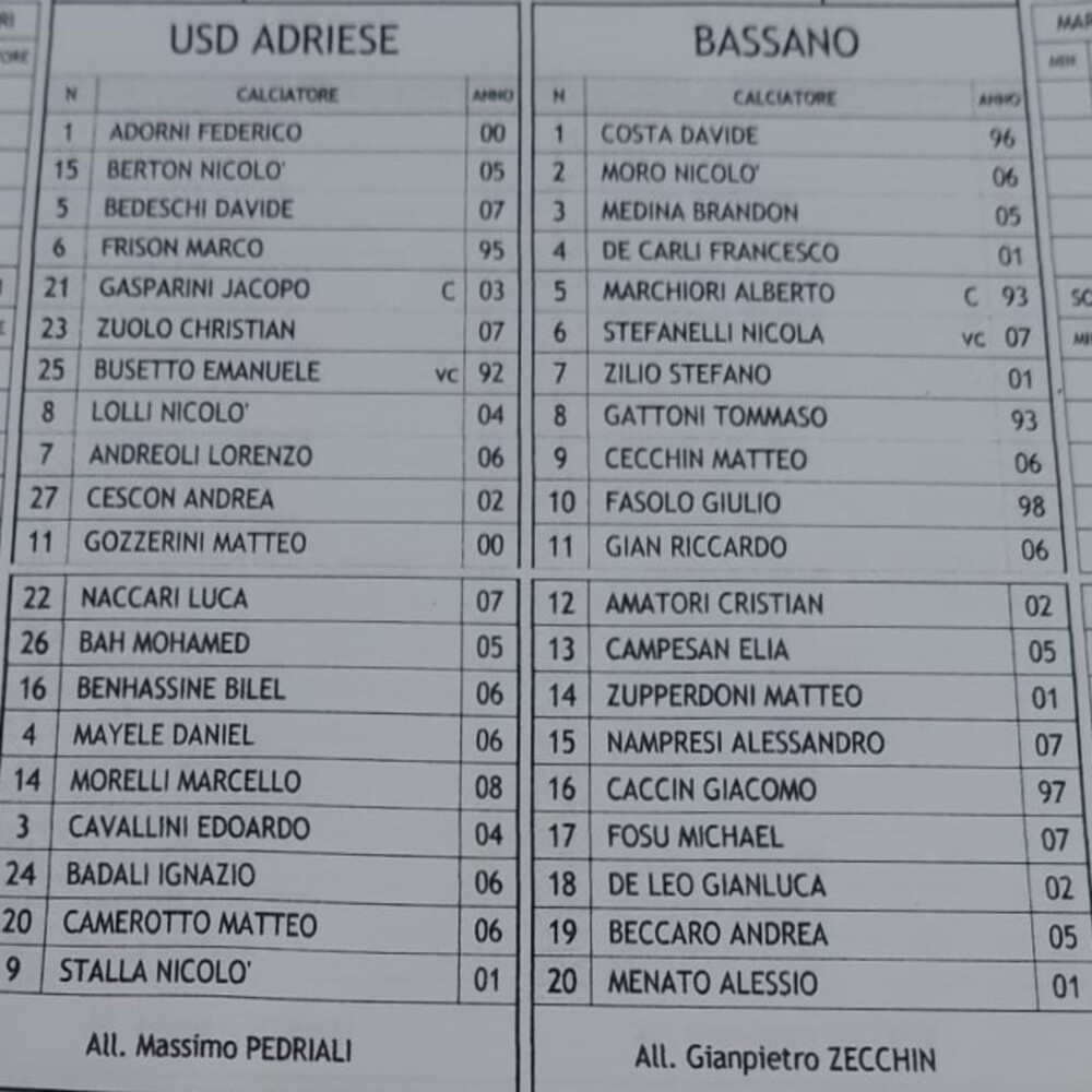 Adriese - Bassano 0-2 (finita)