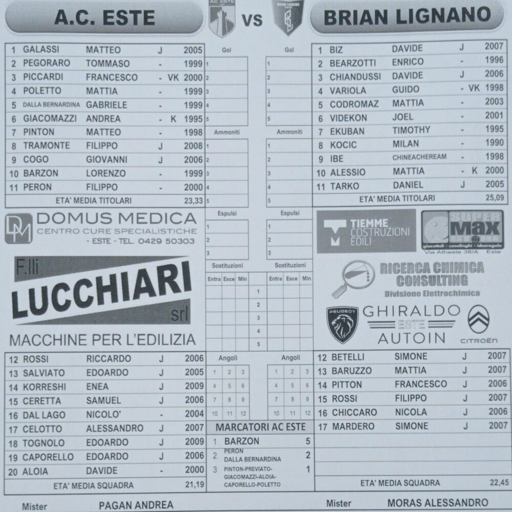 Este - Brian Lignano 3-2 (giocata ieri)