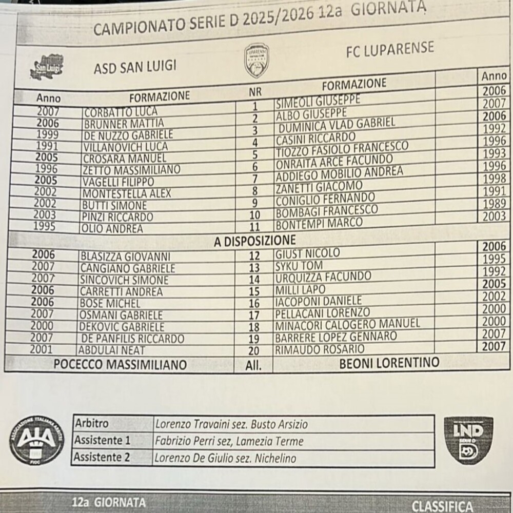 Serie D girone C. Formazioni e risultati della 12. giornata