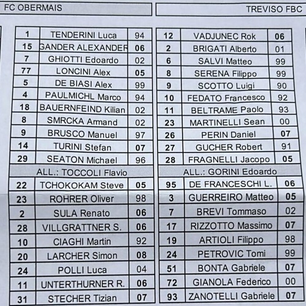 Obermais - Treviso 0-1 (finita)
