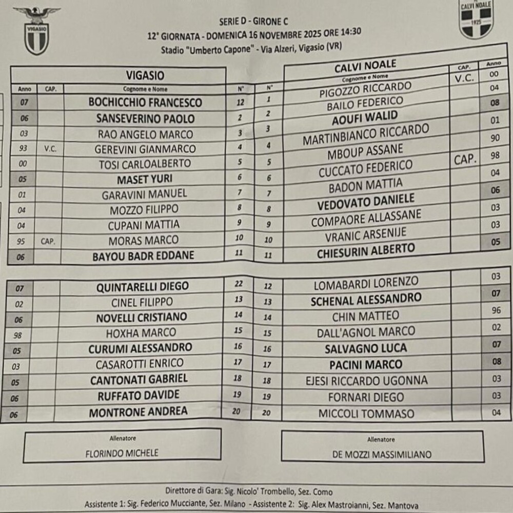 Vigasio - Calvi Noale 0-0 (finita)