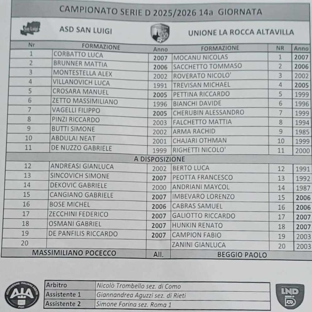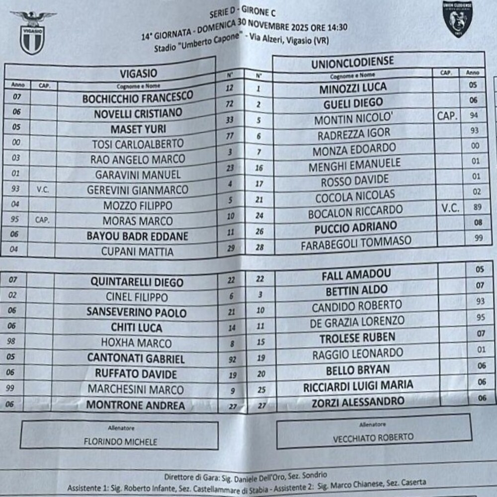 Serie D girone C. Formazioni e risultati della 14. giornata