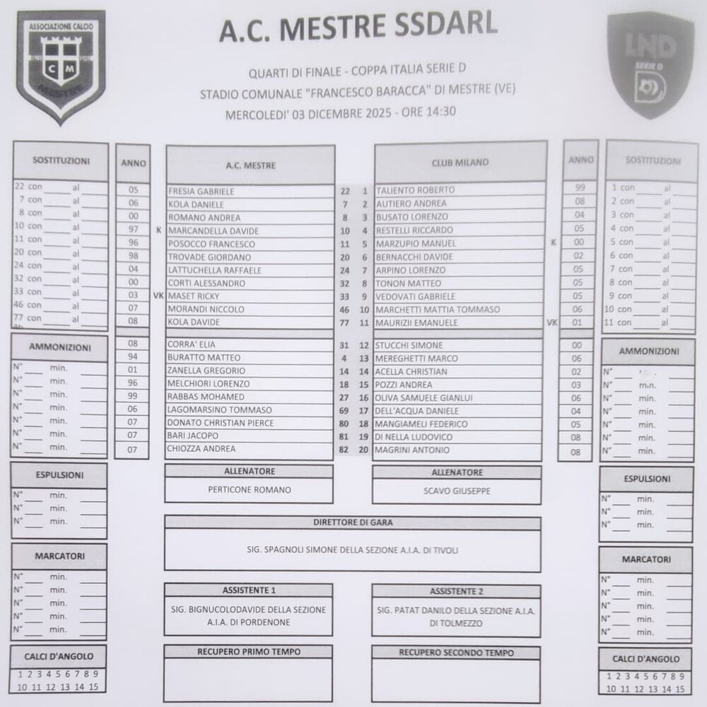 Mestre - Club Milano 0-0 (4-5 dcr)