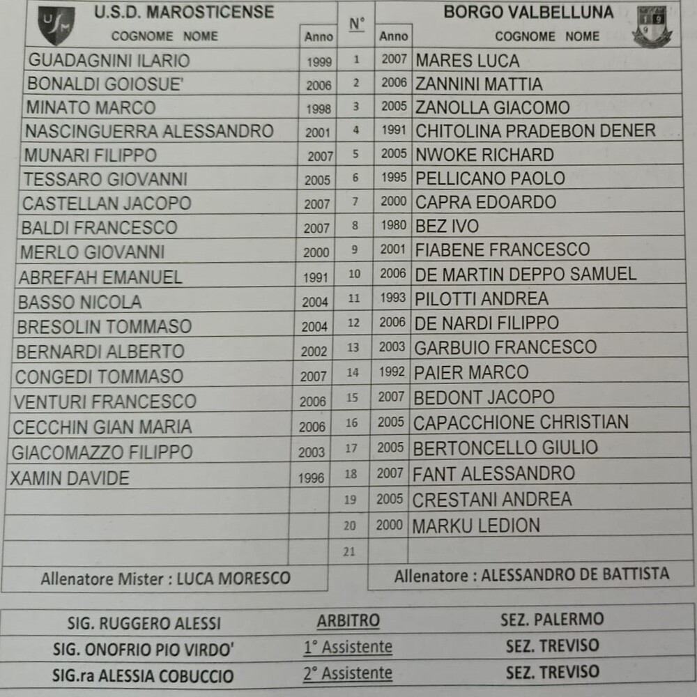Marosticense - Borgo Valbelluna 1-0 (finita)