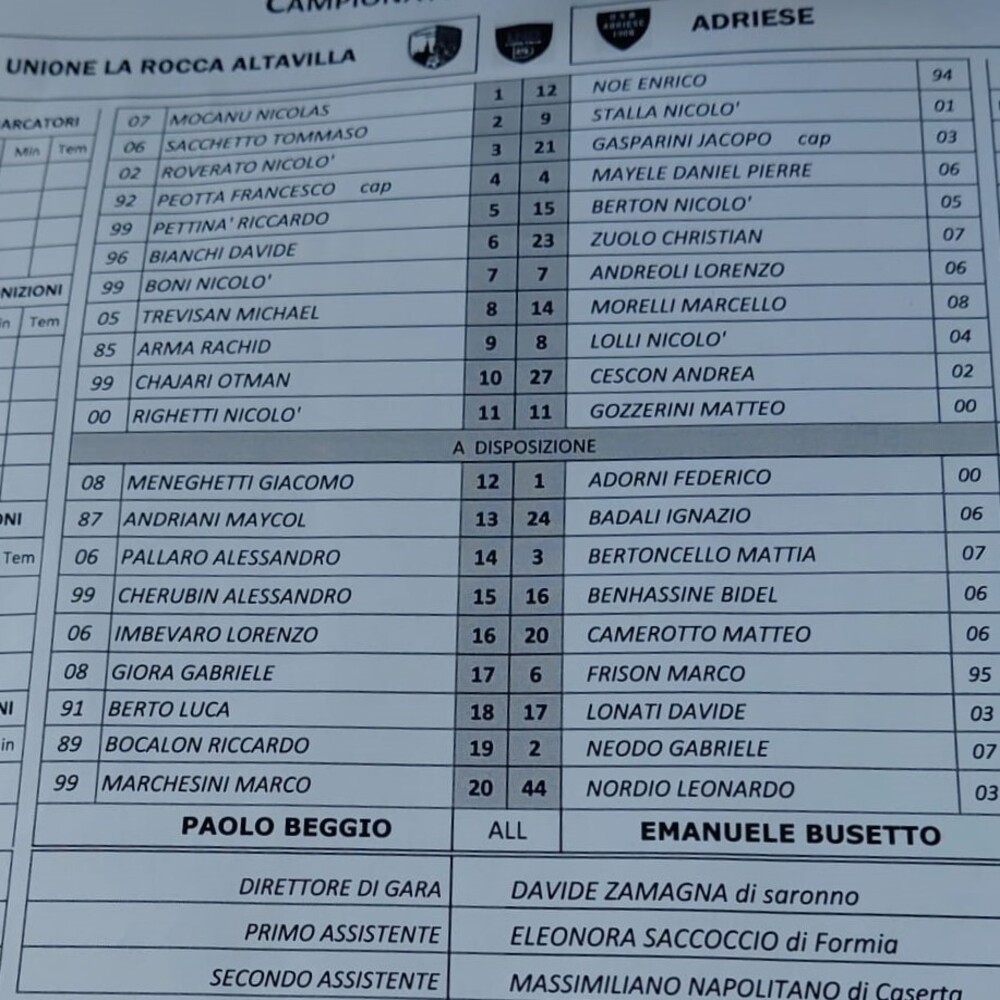 Unione La Rocca Altavilla - Adriese 3-0 (finita)
