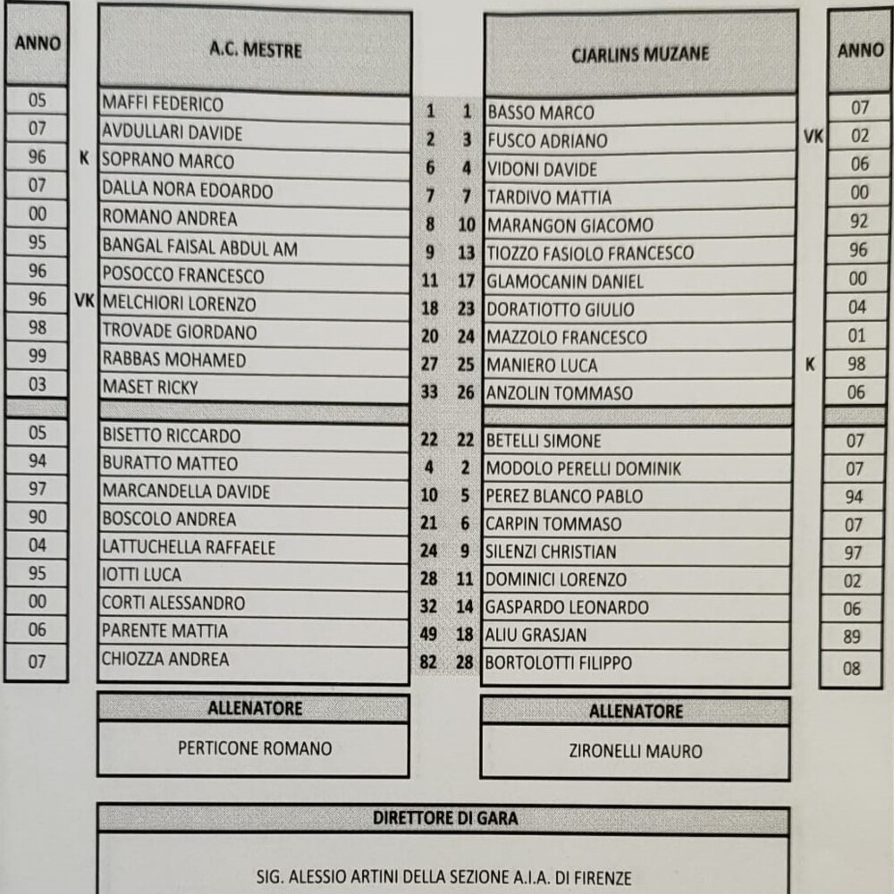 Mestre - Cjarlins Muzane 1-1 (finita)