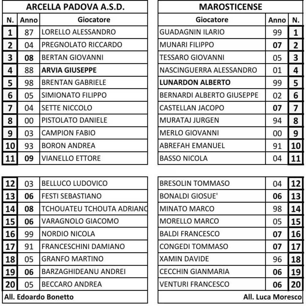 Arcella Padova - Marosticense 3-2 (finita)