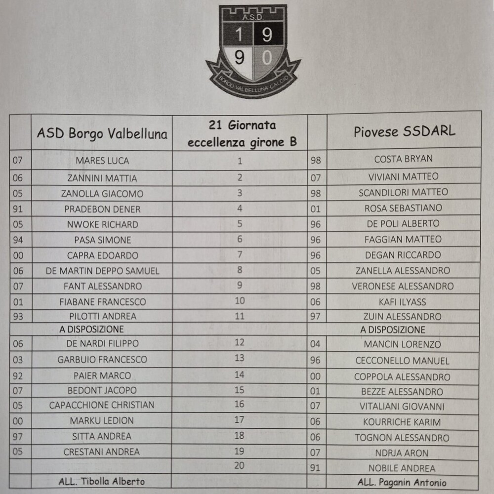 Borgo Valbelluna - Piovese 0-0 (finita)