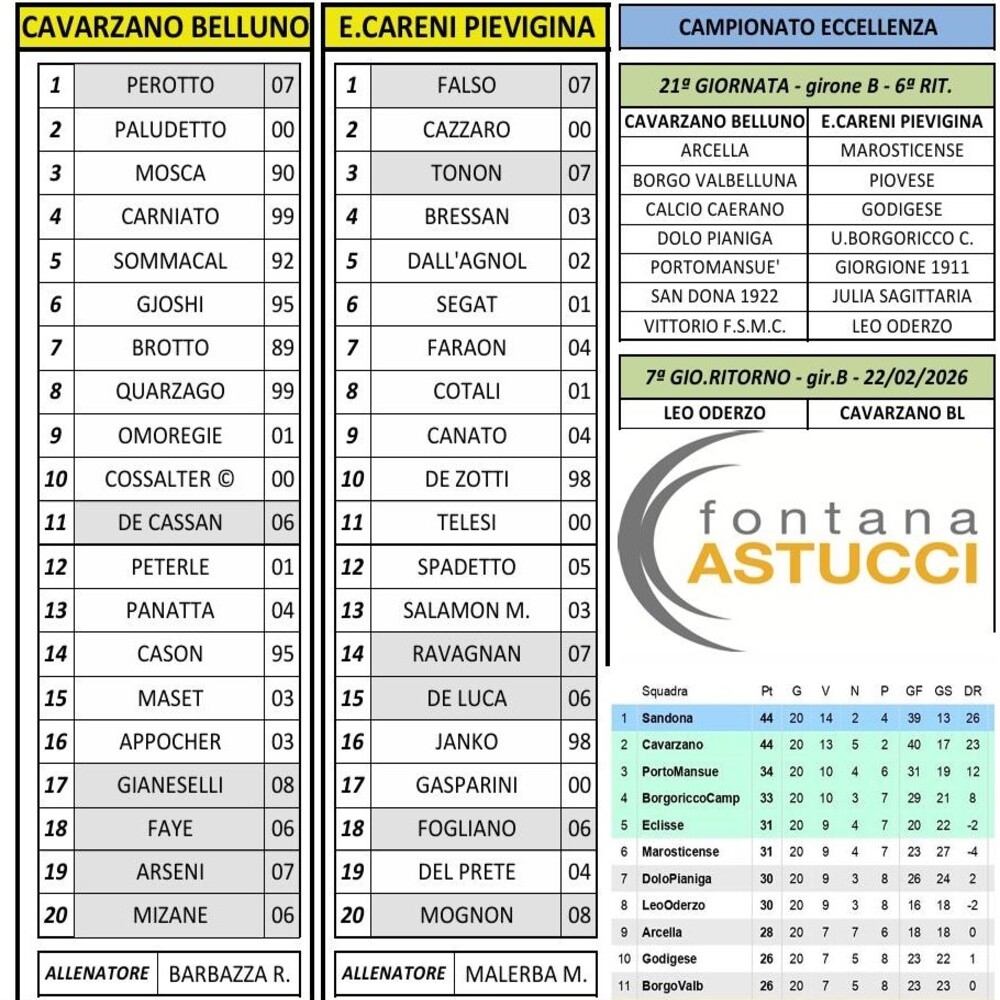 Eccellenza B. Formazioni e risultati della 6. giornata di ritorno