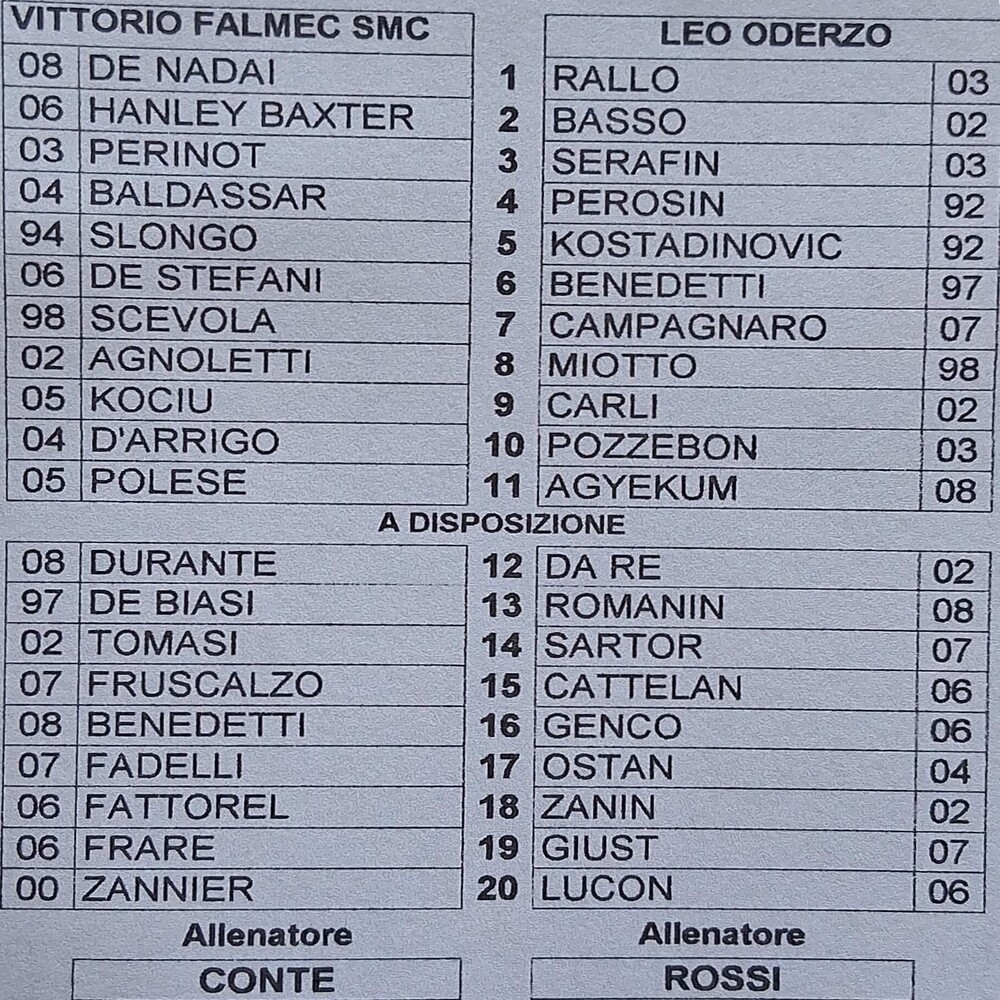 Vittorio Falmec - LeO Oderzo 1-3 (finita)