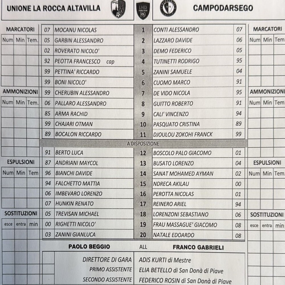 Unione La Rocca Altavilla - Campodarsego 2-2 (finita)