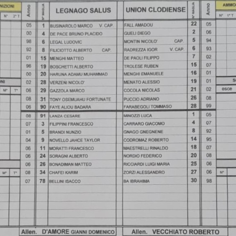 Legnago Salus - Union Clodiense 2-1 (finita)