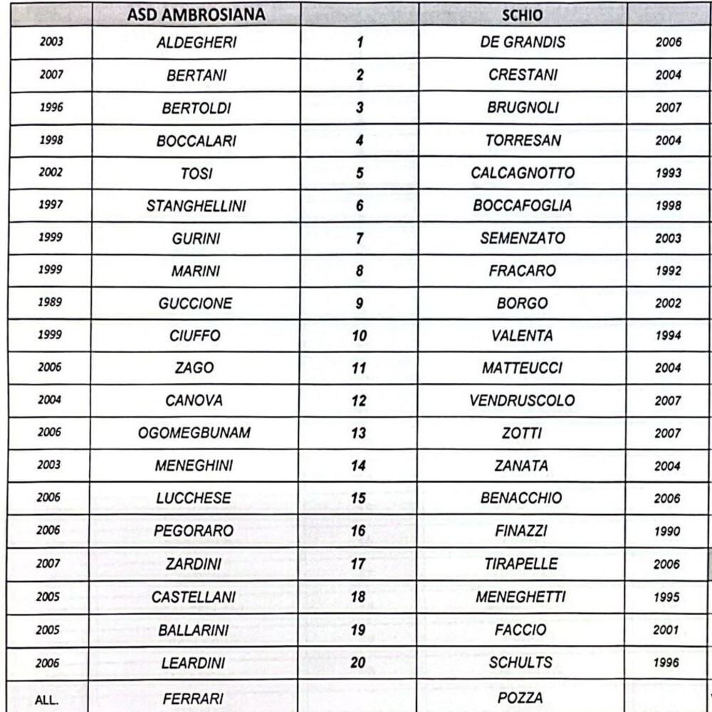 Finisce 1-1 Ambrosiana-Schio, terza contro prima della classe. Stesso risultato per la vice-capolista Villafranchese (-3 dalla vetta) con il Mozzecane.