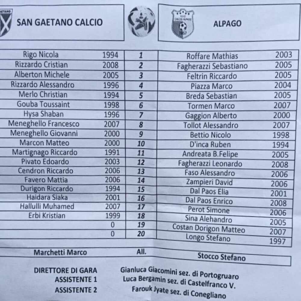 San Gaetano - Alpago 2-2