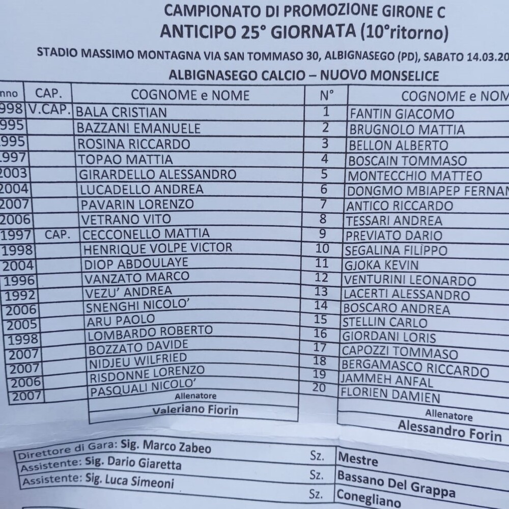 Albignasego - Nuovo Monselice 0-1