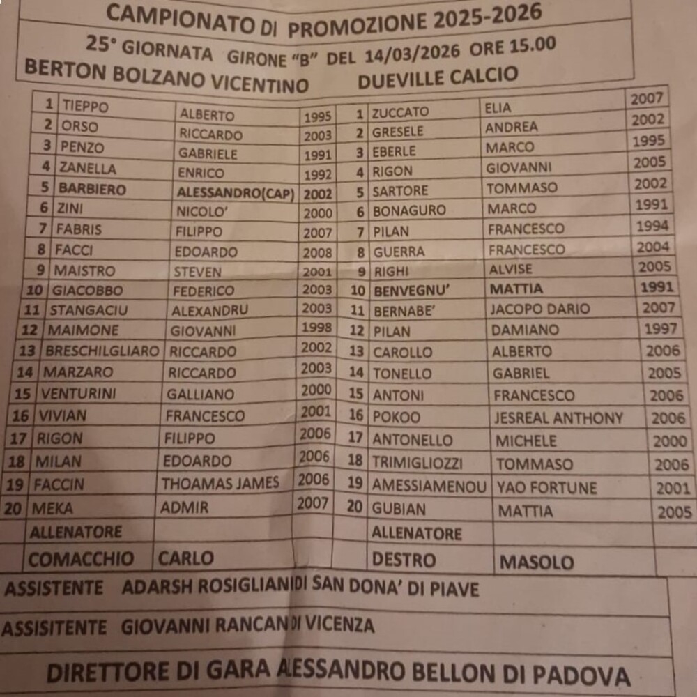 Berton Bolzano Vicentino - Dueville 1-1