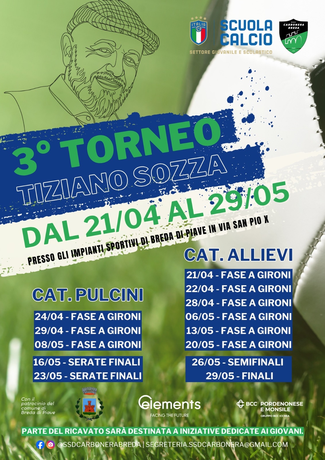 Vai alla galleriaIl Carbonera Breda presenta la terza edizione del Memorial Tiziano Sozza, un appuntamento che negli anni è diventato un punto di riferimento per chi vive il calcio come occasione di incontro e tradizione. Un torneo nato per ricordare una persona che al nostro territorio ha dato molto, dentro e fuori dal campo, e che continua a ispirare le nuove generazioni.