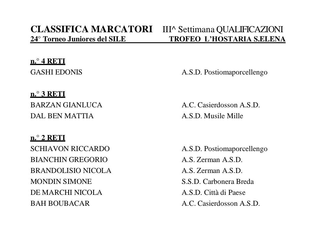 Al 24° torneo "Del Sile" di Sant'Elena (categoria Juniores) è andata in archivio la terza settimana di gare.