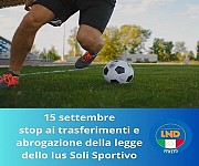 Domani 15 settembre, alle ore 19, scadranno i termini per il trasferimento di calciatori/calciatrici di Calcio a 11 e giocatori/giocatrici di Calcio a 5, “Giovani Dilettanti” e “Non Professionisti” tra società partecipanti ai Campionati organizzati dalla Lega Nazionale Dilettanti.