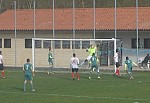 Nella foto: la clamorosa palla gol incornata di testa da Brino, una spanna oltre la traversa.