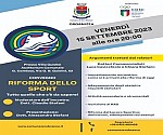 Di Riforma dello sport se ne parla oggi, venerdì 15 settembre, dalle ore 20 all'auditorium comunale "G. Comisso" presso Villa Guidini a Zero Branco (via G.B. Guidini 52).