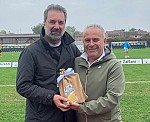 Nella foto a lato: il presidente del Vigasio, Cristian Zaffani (a destra), omaggia il presidente del Mestre, Stefano Serena, in segno di ospitalità (immagine dai canali social del Vigasio).